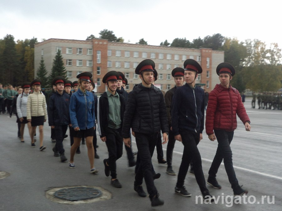 Уже по дороге в кирпичный модуль главного учебного корпуса участники продемонстрировали умение перестраиваться в колонну по одному. На просмотр стендов со схемами очерёдности десантирования у ребят времени не было: на смотре строя и песни надо выглядеть идеально.