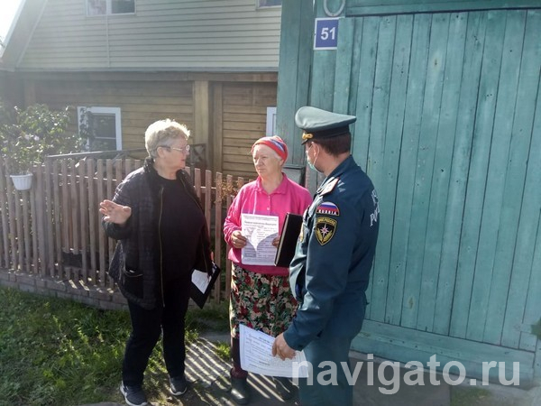 В следующем – совсем другое отношение. Хозяйка встретила проверяющих радушно, всё показала. Мудрая женщина прекрасно понимает, что не от безделья шестеро взрослых людей ходят по домам, выявляя недочёты и вручая памятки по пожарной безопасности. Последствия безалаберности у неё перед глазами: через дорогу – сгоревшее строение.
