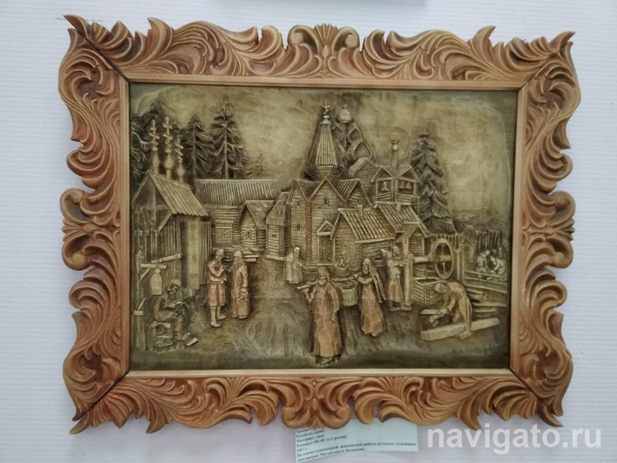 Созданные им портреты удивляют сходством с оригиналом, а пейзажи – реалистичностью. На выставке также представлены резные шкатулки, вазы, солонки и другие бытовые предметы.
