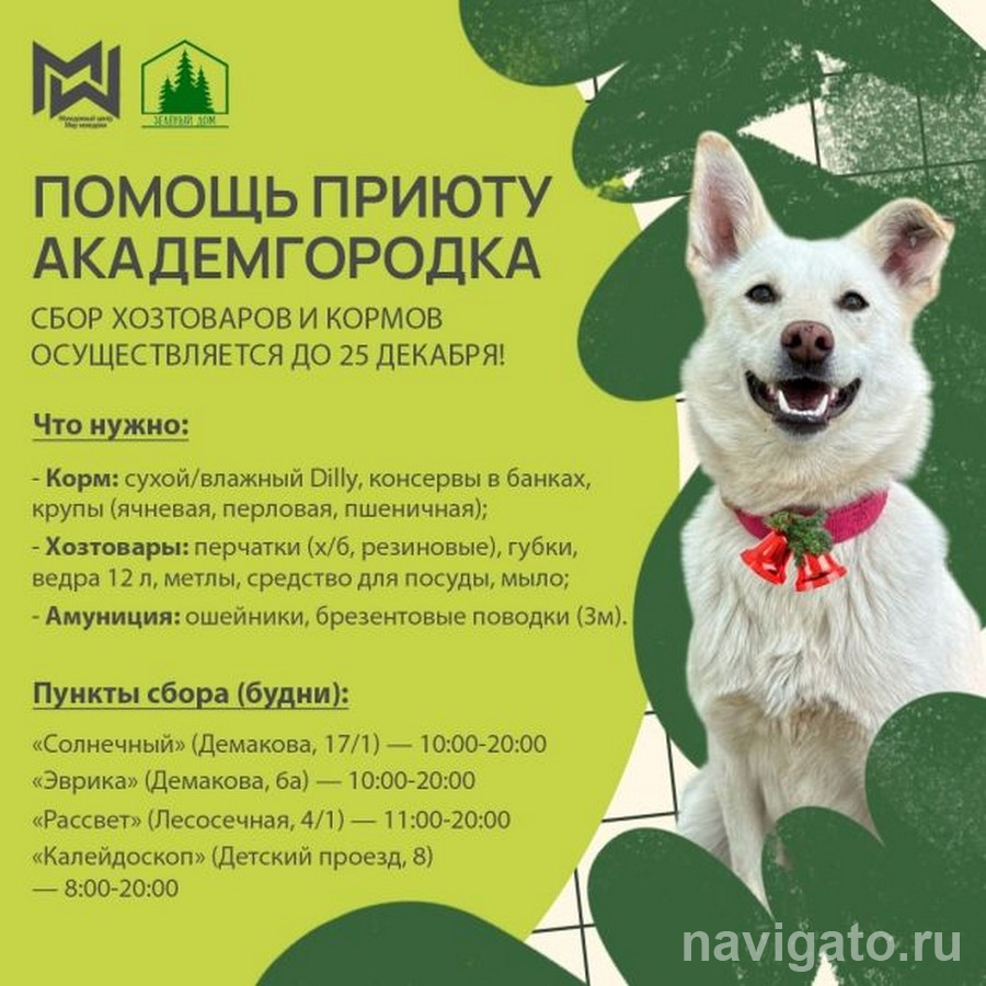 Молодёжный центр «Мир молодёжи» объявил сбор кормов, хозяйственных товаров и амуниции для собак, содержащихся в приюте Академгородка.