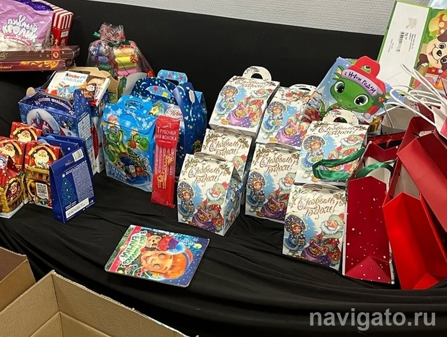 Горожане принесли варежки, развивающие игры и книжки, мягкие игрушки и раскраски, карандаши и фломастеры, средства гигиены и полотенца, много сладких подарков. Всё это разделили на 60 детей, в их числе ребятишки из 18 малообеспеченных и 11 многодетных семей. Детям от полутора до 15 лет.