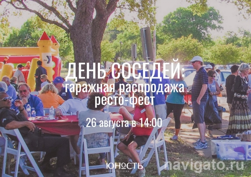 Празднование Дня соседей состоится на площади у Дворца молодёжи «Юность» 26 августа. Участником гаражной распродажи, ресторанного фестиваля и открытой репетиции может стать любой желающий.