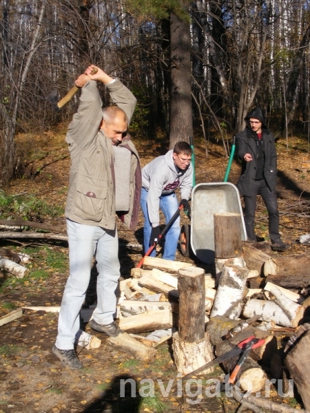 Наше объявление о помощи увидел в соцсетях помощник депутата горсовета Алексея Медведева Павел Красавин. И Алексей Александрович со своей командой прибыл на субботник. Бравые ребята взялись за дело с энтузиазмом. Работала бензопила, мелькали в воздухе колуны. В результате у нас появились кучи наколотых и напиленных дров, готовых к рубке. Сейчас мы спокойны: наши питомцы не будут мерзнуть.