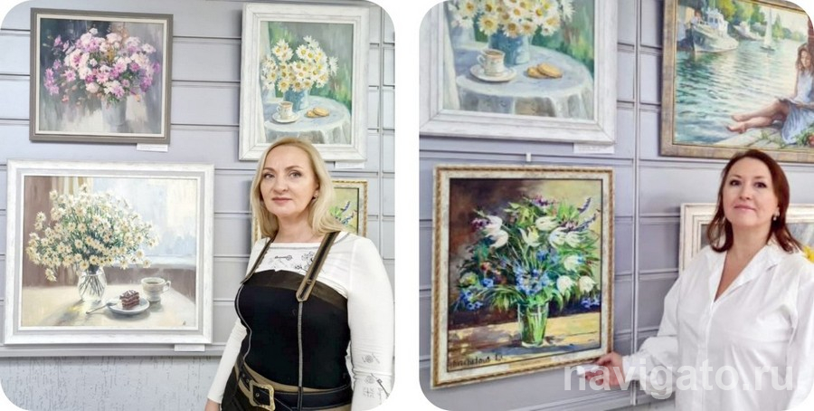 В числе работ Натальи Тархачёвой – натюрморты с цветами («Букет полевых», «Натюрморт с астрами», «Чай с ромашкой», «Завтрак под яблоней»), портреты («Читающая девушка», «Счастье моё»). Ирина Кречетова представила пейзажи и картины на тему путешествий («Путешествия. Доминикана», «крымские» работы). Как говорят художницы, это их приветствие весне, ярким краскам и благодарность миру.