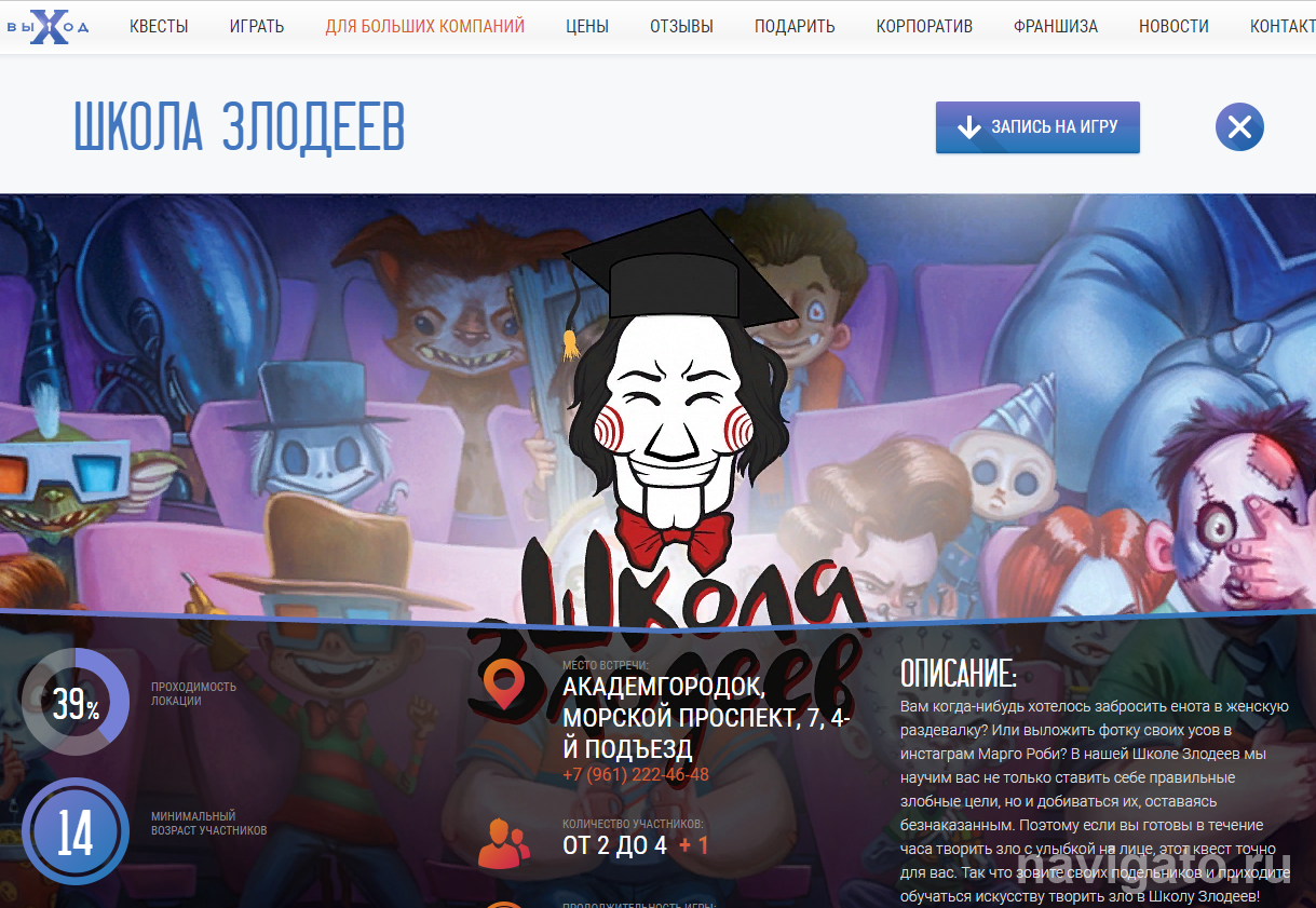 Анализ содержания квестов «Мальчишник» и «Школа злодеев» по предоставленным сценариям и осмотренному интерьеру помещений выявил нарушения требований Федерального закона «О защите детей от информации, причиняющей вред их здоровью и развитию» в части несоответствия заявленному возрасту (14+) и целей достижения результатов. Установлено, что при участии детей в квестах у них не формируется отрицательное отношение к употреблению алкогольных напитков, в ходе проведения мероприятия звучит призыв выбирать стратегию поведения, направленную на поддержку зла и жестокости, сообщает пресс-служба  прокуратуры.