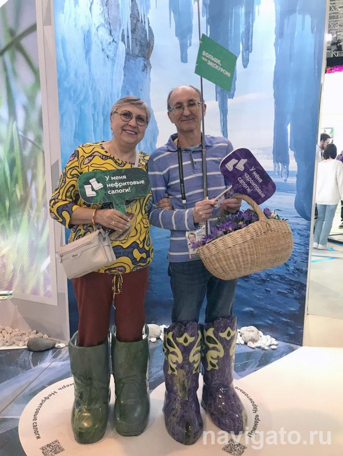 На фото О. Бородин с землячкой Л. Фещенко в павильоне Иркутской области