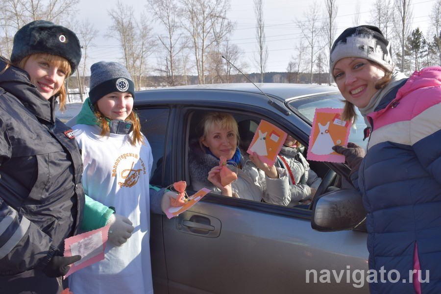 Женщин-водителей с серьёзным видом останавливал сотрудник ГИБДД. Те в недоумении пытались понять, когда и где успели нарушить правила. Но от инспектора вместо замечаний и штрафов они получали поздравления, пожелания здоровья, счастья, любви, запаса тормозного пути и безаварийной езды!