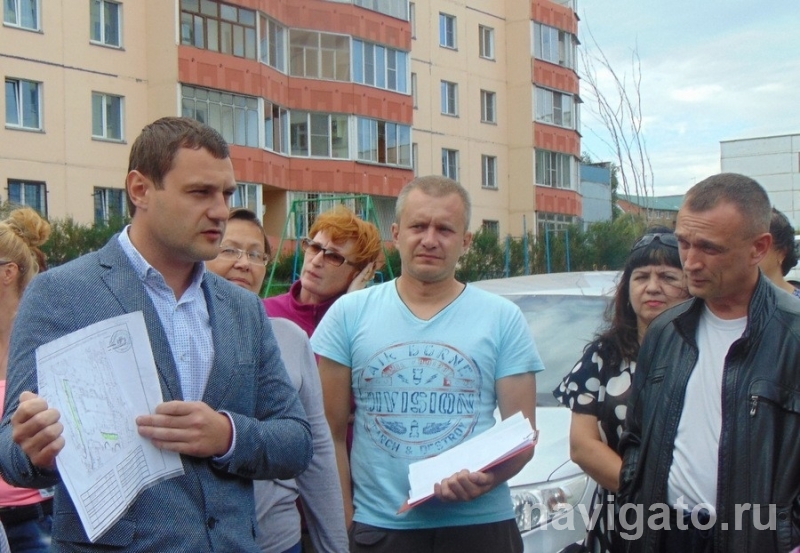11 июля замглавы администрации района Павел Ладышкин и начальник отдела энергетики и ЖКХ Денис Зеленцов встретились с жителями двора. Хотя даже не вывешивалось объявлений об этом мероприятии, собралось около 50 человек. Павел Владимирович показал схему благоустройства и объяснил, что вдоль внутриквартального проезда на протяжении 250 метров собираются сделать автопарковку. Для этого нужно отсыпать щебнем и заасфальтировать полосу шириной 5 метров.