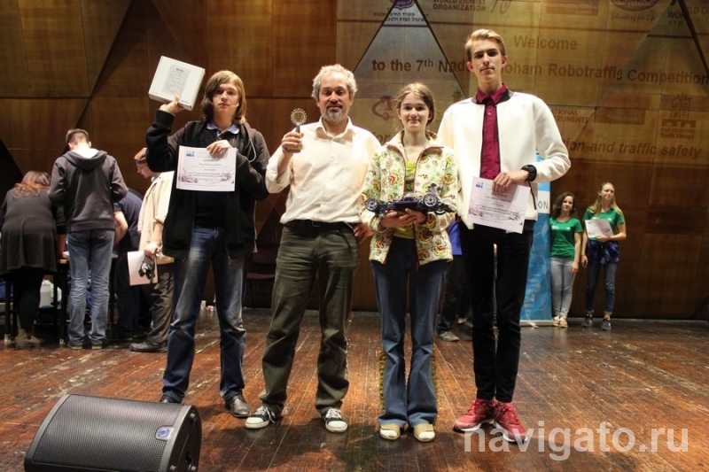В первенстве участвовали 25 команд из Украины, США, Аргентины, Мексики и Израиля. Россию представляли четыре автомобиля-робота, сделанные ребятами из Москвы, Санкт-Петербурга, Екатеринбурга и Новосибирска. В нашу команду вошли учащийся Высшего колледжа информатики НГУ Михаил Сердюк и ученик лицея №130 Алексей Дембровский. Тренирует юных робототехников студентка госуниверситета Надежда Сердюк. В пяти направлениях роботраффика они заняли одно первое, одно второе и три четвёртых места. И это лучший результат среди российских команд.