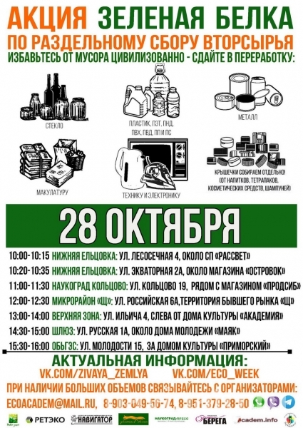23-28 октября в Советском районе проводится очередная благотворительная акция по сбору вторсырья «Зелёная белка».