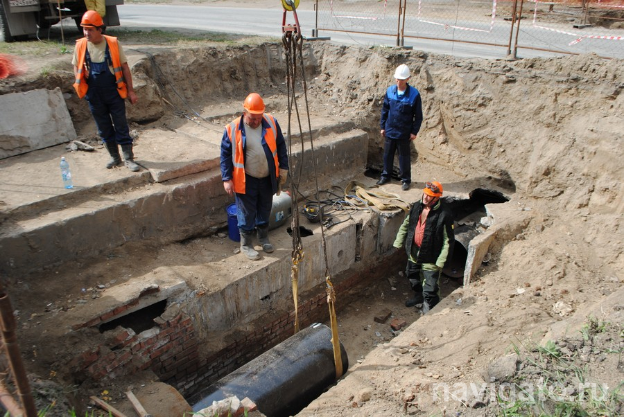 Чтобы извлечь старую трубу и заменить её на новую, вырыли три котлована: по обеим сторонам проезжей части и на разделительном газоне. Горячее водоснабжение на этом участке перекрыли. Разрезая на небольшие участки повреждённый трубопровод, работники вытащили его, взамен в бетонные лотки так же частями уложили новую трубу. Опытный сварщик Виктор Вялков приварил её к основному трубопроводу, затем постепенно соединил между собой все новые блоки. После укладки изоляции заменили плиты защитного лотка. То же самое сделали и на обратном трубопроводе.