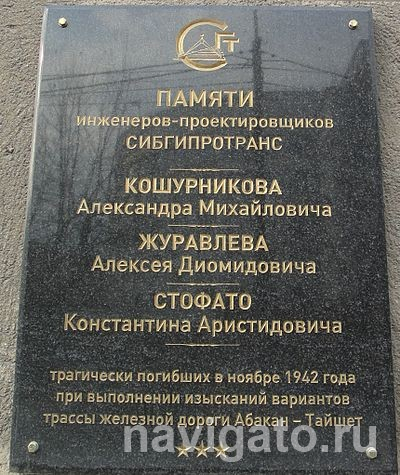 На Вокзальной находится проектный институт «Сибгипротранс». Недалеко от входа – мемориальная доска в память о сотрудниках, погибших в начале зимы 1942 года на реке Казыр в горах Восточного Саяна при обследовании части тайги в поисках кратчайшего варианта железнодорожного пути, всем известного под названием БАМ. В ноябре 2017-го исполнилось 75 лет со дня гибели этих людей.