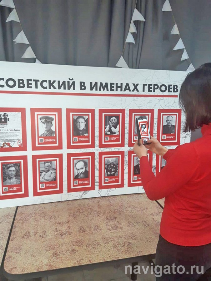 Проект «Советский в именах героев» получил грантовую поддержку. Ребята сняли ролики и разместили их в соцсети «ВКонтакте». На выделенные средства изготовили информационный стенд. Там размещены 11 фотографий героев, в честь которых названы улицы. Под каждым снимком – QR-код, по которому можно перейти на видеосюжет об исторической личности.