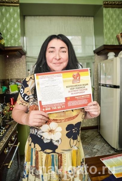 - Присоединиться к СПРАВЕДЛИВОМУ МИЛЛИОНУ, поставить свою подпись за отмену налога на капремонт можно на улицах района, у волонтёров Центра защиты прав граждан «Справедливая Россия» или в приёмных Центра по адресам: ул. Приморская, 9/1 и ул. Российская, 8.