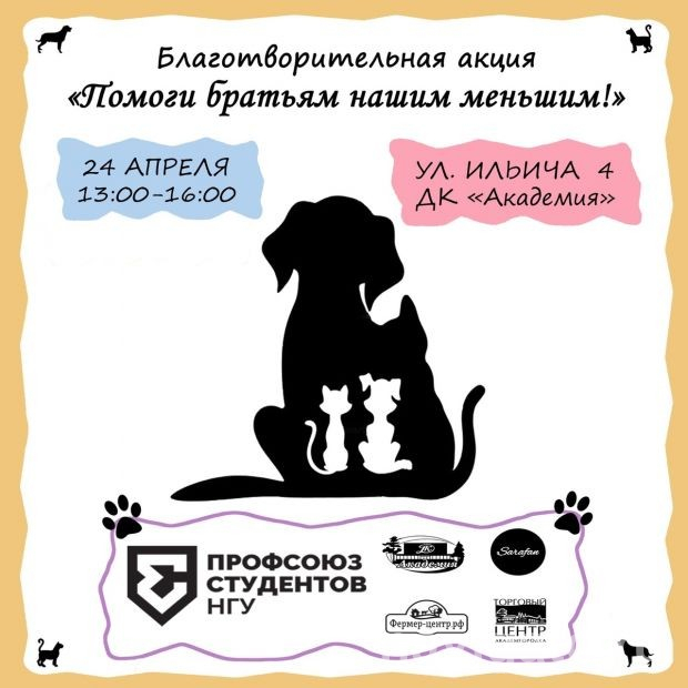 Благотворительную акцию «Помоги братьям нашим меньшим» организует профсоюз студентов Новосибирского государственного университета.