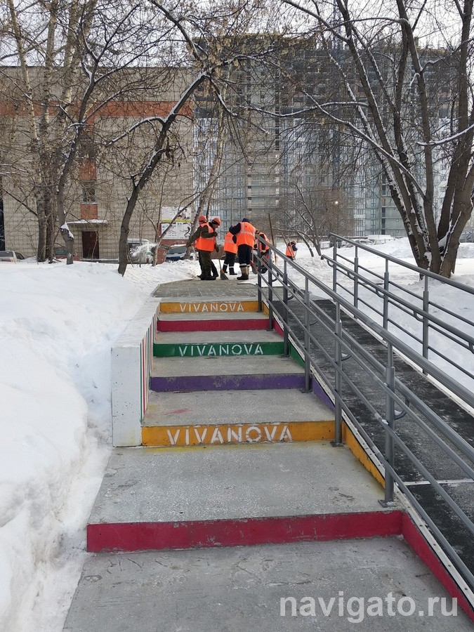 Естественная необустроенная тропинка, которая пользовалась огромной популярностью у жителей микрорайона Щ, теперь обрела твёрдое бетонное основание и лестницу с пандусом. Для удобства и безопасности пешеходов, чтобы не было скользко, пандус застелили покрытием.