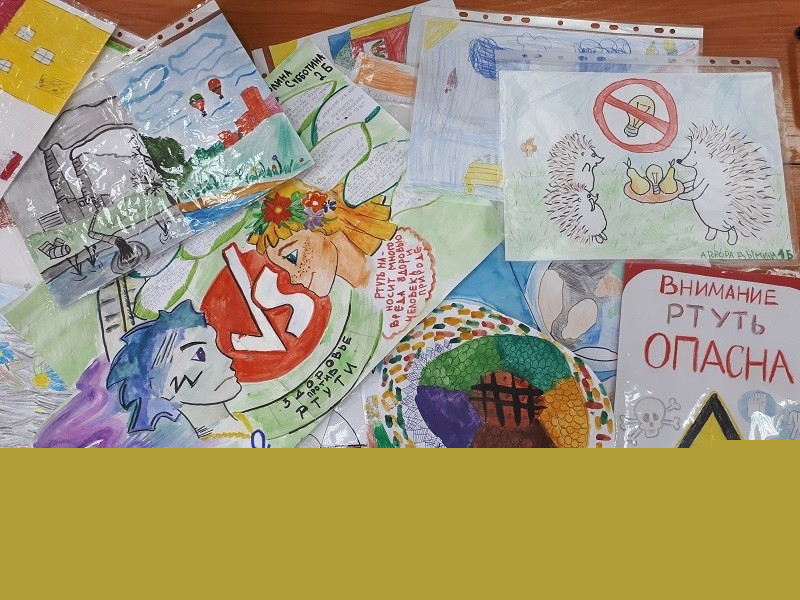 Проведённый среди старшеклассников опрос показал, что мало кто из ребят знает адреса приёма ртутьсодержащих ламп. Для младших школьников Катя Морозова и Оля Петроченко провели экоминутки «Ртуть. Безопасность людей и мира», после которых ученикам 1-х–5-х классов предложили участвовать в тематическом конкурсе рисунков. Все работы вывесили в столовой гимназии и устроили голосование. В итоге 224 балла из 1125 и приз зрительских симпатий достался пятикласснице Вике Сафоновой. Ещё несколько авторов лучших рисунков также получили грамоты и сладкие подарки.