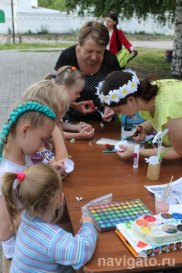 Ведущая Екатерина Королёва рассказала присутствующим историю праздника. Потом звучали задорные песни 60-70-х годов в исполнении солистки народного коллектива вокального ансамбля «Элегия» Галины Катанцевой. Жители микрорайона под хиты легенд советской эстрады энергично танцевали. Самые юные участвовали в мастер-классе по созданию символа праздника – ромашки, а после рисовали её на асфальте, с помощью аквагрима перевоплощались в удивительные образы и любимых героев.