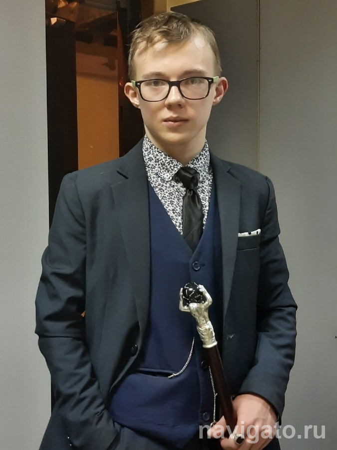 Хотя он и сам выглядит немного театрально. На интервью в редакцию «Навигатора» пришёл в костюме-тройке, галстуке, с перстнем на указательном пальце, часами на цепочке и, конечно, с тростью – из трёх видов дерева, набалдашником в виде атланта, держащего Землю, инкрустированную кристаллами Сваровски.