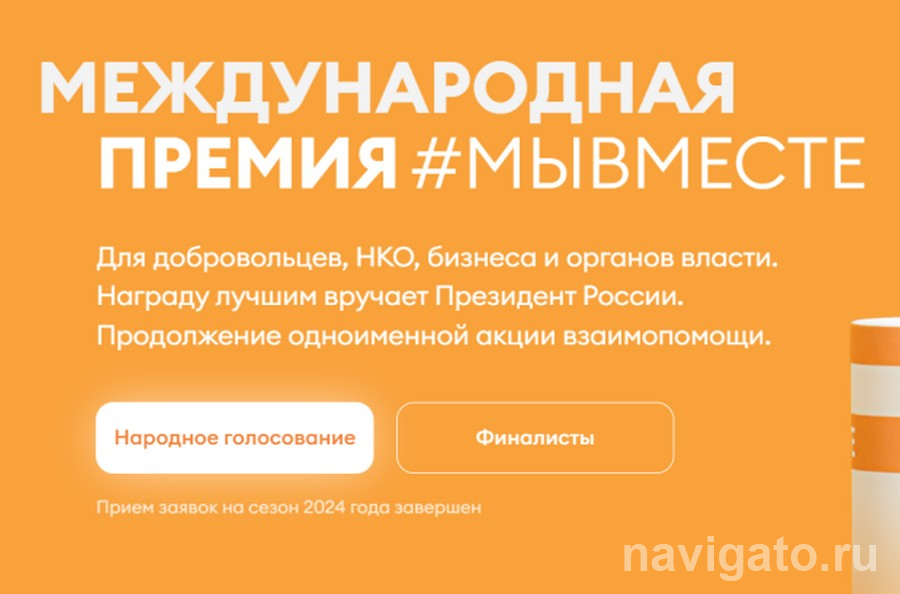 Объявлены финалисты международной премии #МЫВМЕСТЕ-2024. Кроме того, стартовало народное голосование, которое продлится до 21 ноября и сыграет свою роль при определении победителей.