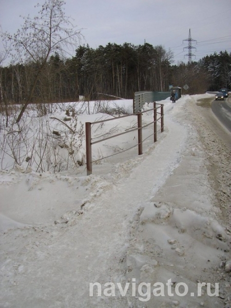 Ограждение сняло одну из важных проблем безопасности пешеходов на этом участке дороги, но... С приходом настоящей зимы отвалы, которые остаются после снегоуборочной техники, полностью засыпали тропинку. Поручень стал бесполезным: пешеходам, в том числе и молодым родителям с колясками, все равно приходится обходить сугробы по проезжей части.