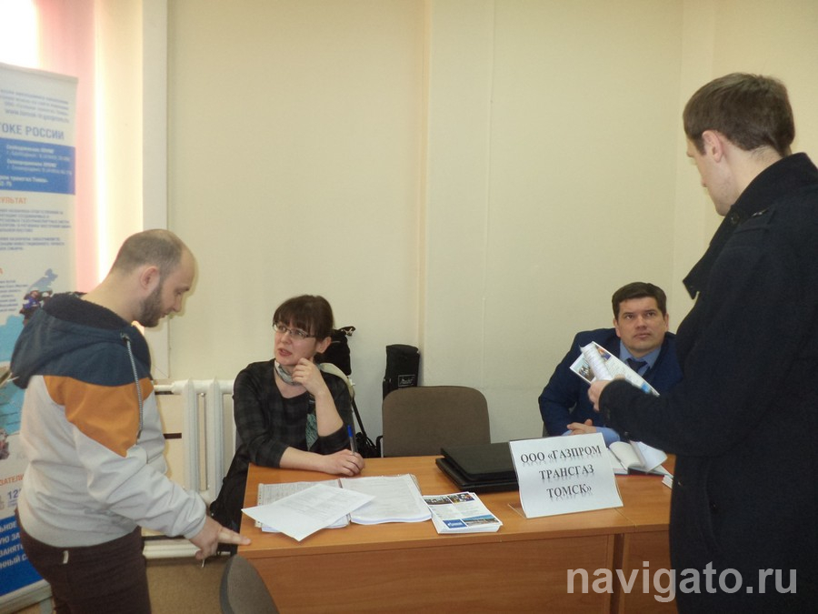 На вопросы соискателей отвечали представители ООО «Газпром трансгаз Томск», предлагающие работу в Свободненском, Алданском и Ленском линейно-производственных управлениях магистрального газопровода, и ООО «Ротекс-с», набирающие людей на вахту в Туруханский район Красноярского края. О том, что движет новосибирцами, готовыми на месяц-полтора уехать в отдалённые северные посёлки, узнавал корреспондент «Навигатора».