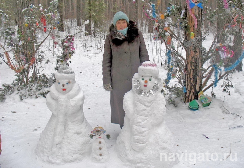 Восьмой год подряд трудолюбивая жительница микрорайона «Щ» создает на этой полянке настоящую зимнюю сказку. Десяток скульптур и примерно столько же снежных барельефов, расположенных прямо на сосновых стволах, – вот классический объем зимних работ Тамары Федоровны.