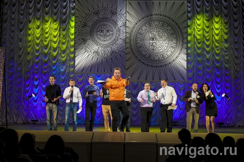 - Его постарались сделать не просто отличным (подготовленным на «пять»), а еще и отличным от других. Вести программу пригласили музыканта, актера, ведущего передачи «Галилео» Александра Пушного. Выпускник физфака НГУ замечательно вписался в компанию нынешних и бывших кавээнщиков, умело компенсируя конферансом технические заминки и некоторые не очень удачные попытки пошутить. Чувствовал Александр себя на сцене родного Дома ученых, как рыба в воде. Казалось, и написал он всё сам. Но корреспонденту «Навигатора» ведущий признался, что сочинил только пару связок между номерами и музыкальную импровизацию с залом (исполнение песни «Катюша» в четырех стилях – рэп, панк, блюз и регги). Остальное – заслуга Дмитрия Ефимовича, Вадима Фоминых, Марианны Безносовой и молодых квантовцев.